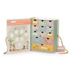 Coffret à trésors pour conserver les souvenirs de bébé dans chacun des tiroirs ... Se referme avec de jolis liens et reprend les tendres illustrations des personnages de la collection Trois Petits lapins à l'intérieur comme à l'extérieur.