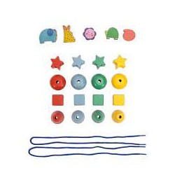 Un jeu de manipulation et d'observation avec des perles de couleurs et formes variées à enfiler sur un lacet. L'enfant peut l'utiliser en jeu libre ou reproduire les séquences.
