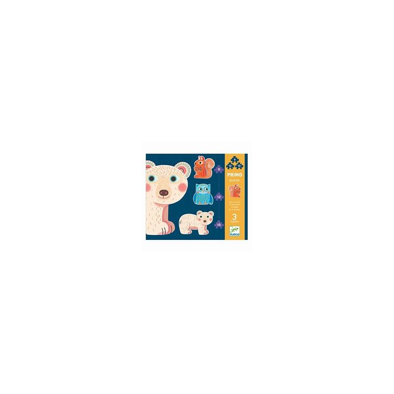 Découvrez le primo puzzle Dans la forêt de Djeco, un coffret qui comprend 3 puzzles évolutifs et silhouettés de difficulté croissante pour les enfants à partir de 3 ans.