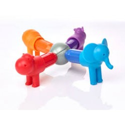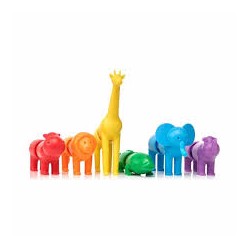 Votre enfant va utiliser les bâtonnets de couleurs différentes et les têtes et queues des animaux pour reconstituer un lion, un crocodile, un hippopotame, un rhinocéros, un éléphant et une girafe. De quoi faire des combinaisons réalistes ou imaginaires.