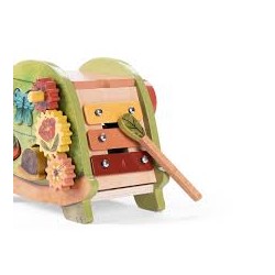 À la fois boite à formes, engrenages et instrument de musique, ce jouet d'éveil est une belle idée de cadeau à offrir pour une naissance ou pour un premier anniversaire. Il viendra stimuler les sens de bébé et développer sa motricité fine.
