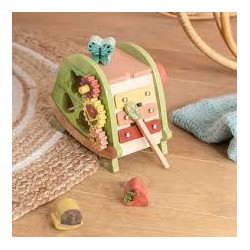Une adorable tortue en bois qui offre 4 faces riches en découvertes de jeux et d'apprentissages. Votre enfant pourra s'amuser avec des formes à encastrer, des roues dentées à faire tourner, un xylophone...